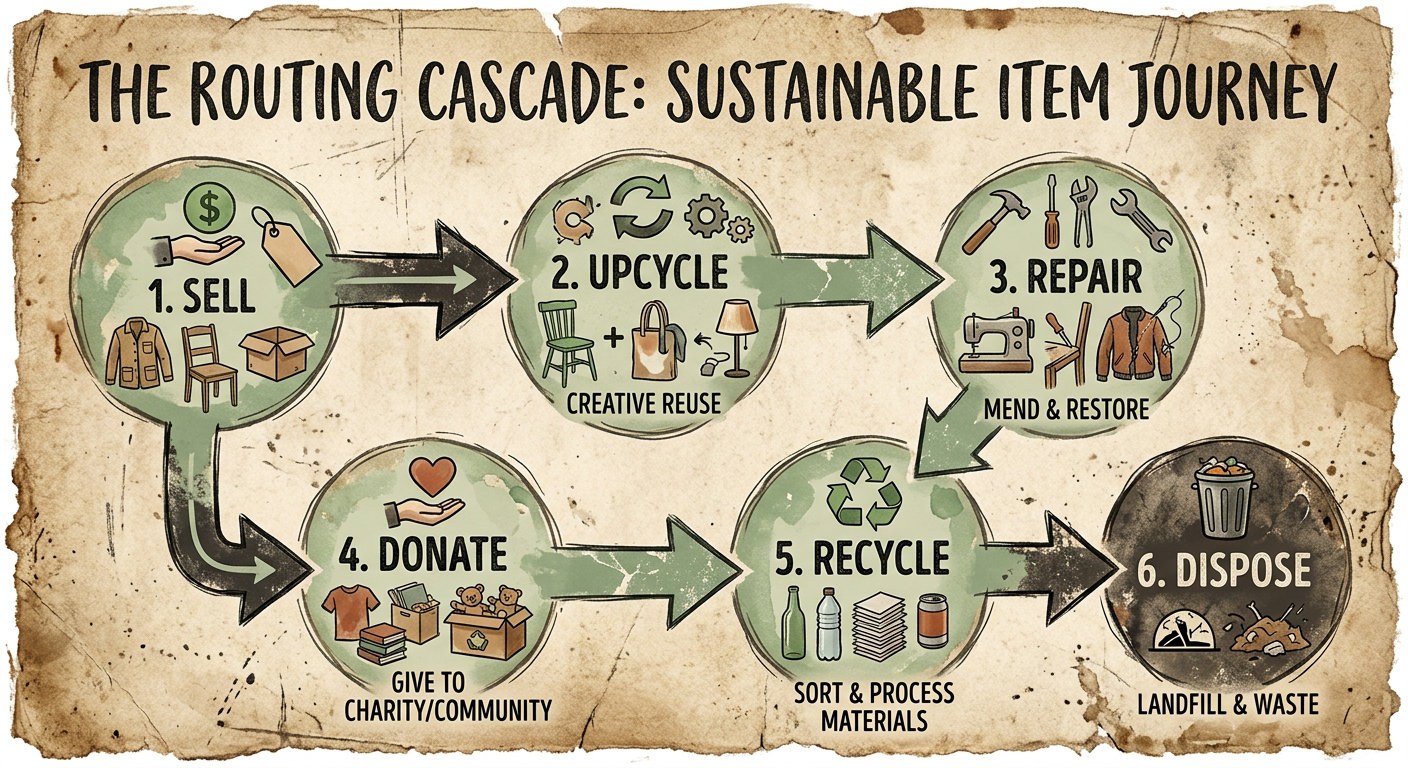 Instead of one destination (landfill), every item gets evaluated through multiple pathways: